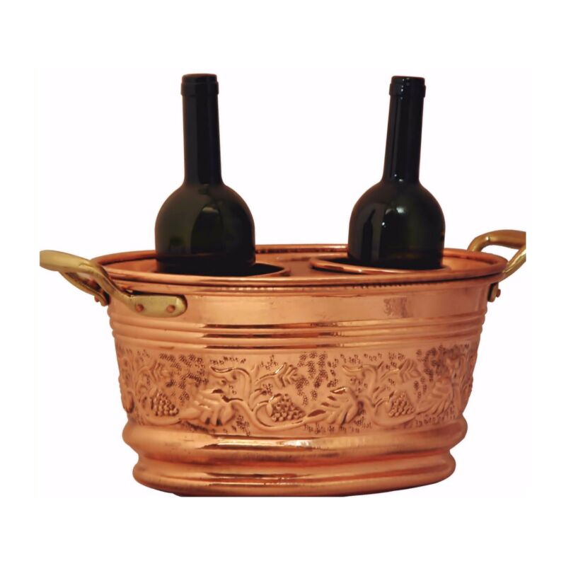 Secchielli portaghiaccio ad uno, due o tre fori in rame anticato. La bottiglia non entra in diretto contatto con il ghiaccio, mantenendosi perfettamente fresca ed asciutta.